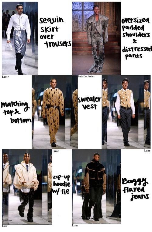 I wanted to include my favorite men's fashion from the shows as I have found myself getting more and more inspiration from men's fashion in recent months. This could be because a lot of trends for women right now revolve around typical men's accessories, like ties and vests, or it could just be an effect of gender becoming less and less prominent in our society. Whatever the case may be, I am loving the men's outfits shown this season and am looking for ways to incorporate them into my own style.