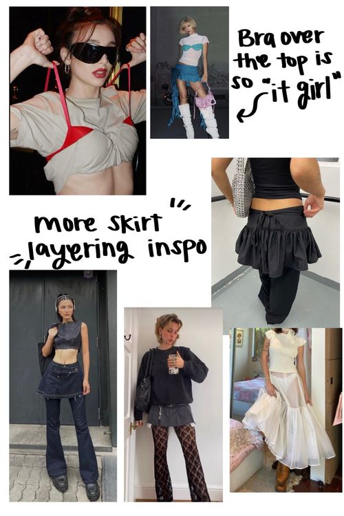 Next, I found that layering has been showing up in a different form. Wearing a skirt over pants might remind you of the early Hannah Montana days, but now it’s transformed into a chic way to add texture and interest to an outfit. Also, I have loved seeing bras layered over t-shirts. The mesh see-through style has been so prevalent for the last couple of years that now showing off your undergarments is being styled by putting them over a person’s top. Here you can see Emma Chamberlain taking on this look with an Acne Studios outfit.